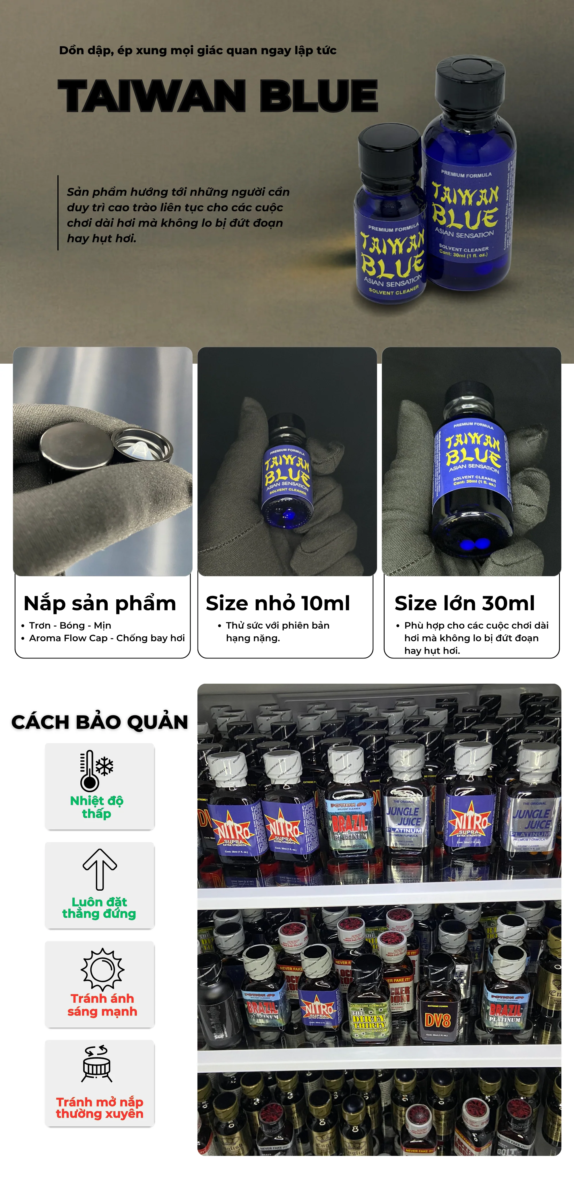 Công dụng thực tế: Với độ tinh khiết cao, hoạt chất Isobutyl Nitrite thẩm thấu cực nhanh qua khứu giác, giúp giãn cơ trơn tức thì, loại bỏ cảm giác đau rát và tạo luồng nhiệt hưng phấn mạnh mẽ chỉ sau vài giây.